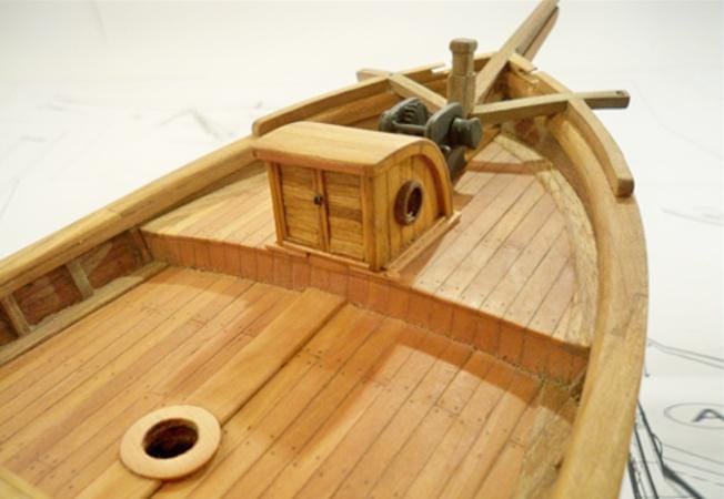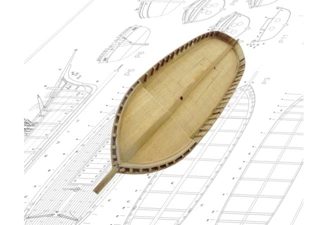 - Massives Walnussholz für Kiel, Steven, Deck und Seitenteile.