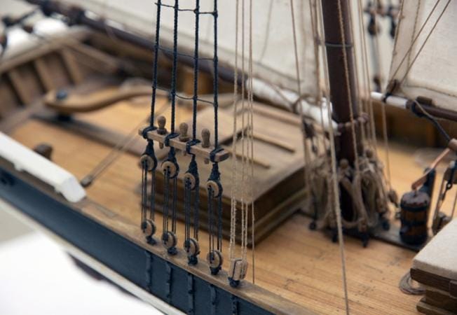 - Pre-sewn sails embroidered on fine cloth for realistic detailing.
