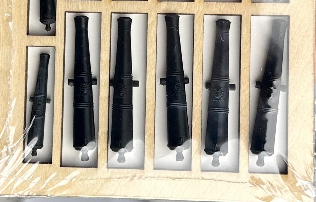 The sails come pre-embroidered and pre-sewn, providing historical accuracy while saving assembly time.