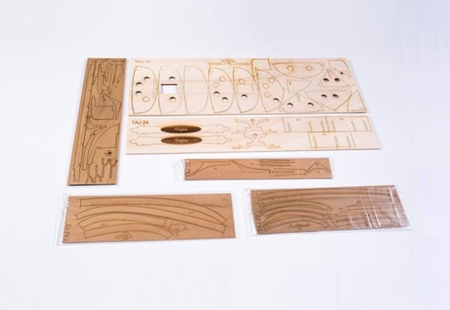 Everything needed to build the complete Trajta model is included in the box.