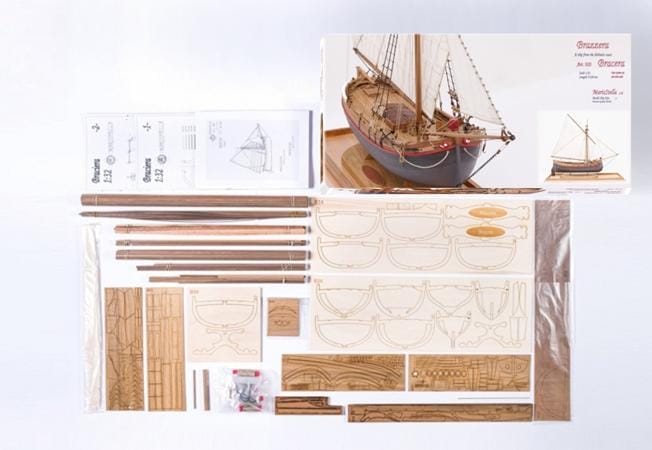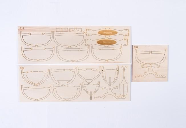 - Комплексный набор: 11 лазерных деревянных листов, заранее сшитые паруса, листы из травленой латуни и нити для такелажа.