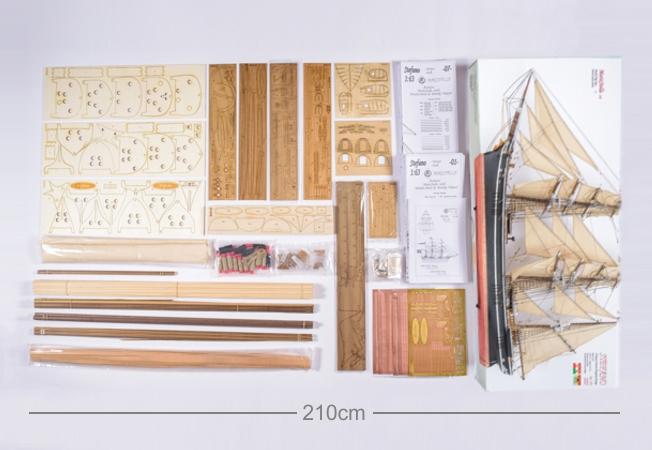 这款套件是 中高级水平。由于索具细节和多帆的设计,建议有一些之前的模型建造经验。